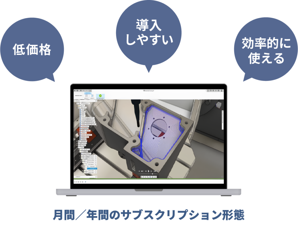 FusionはCAD/CAM一体型のため、複数のソフトに投資するコストを大幅にカットできます。
