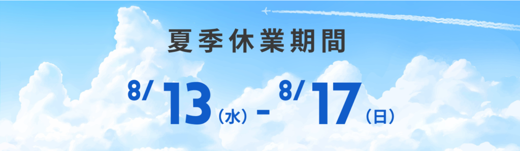休業期間内にいただいたお問い合わせにつきましては、休業日明け以降順次対応させていただきます。